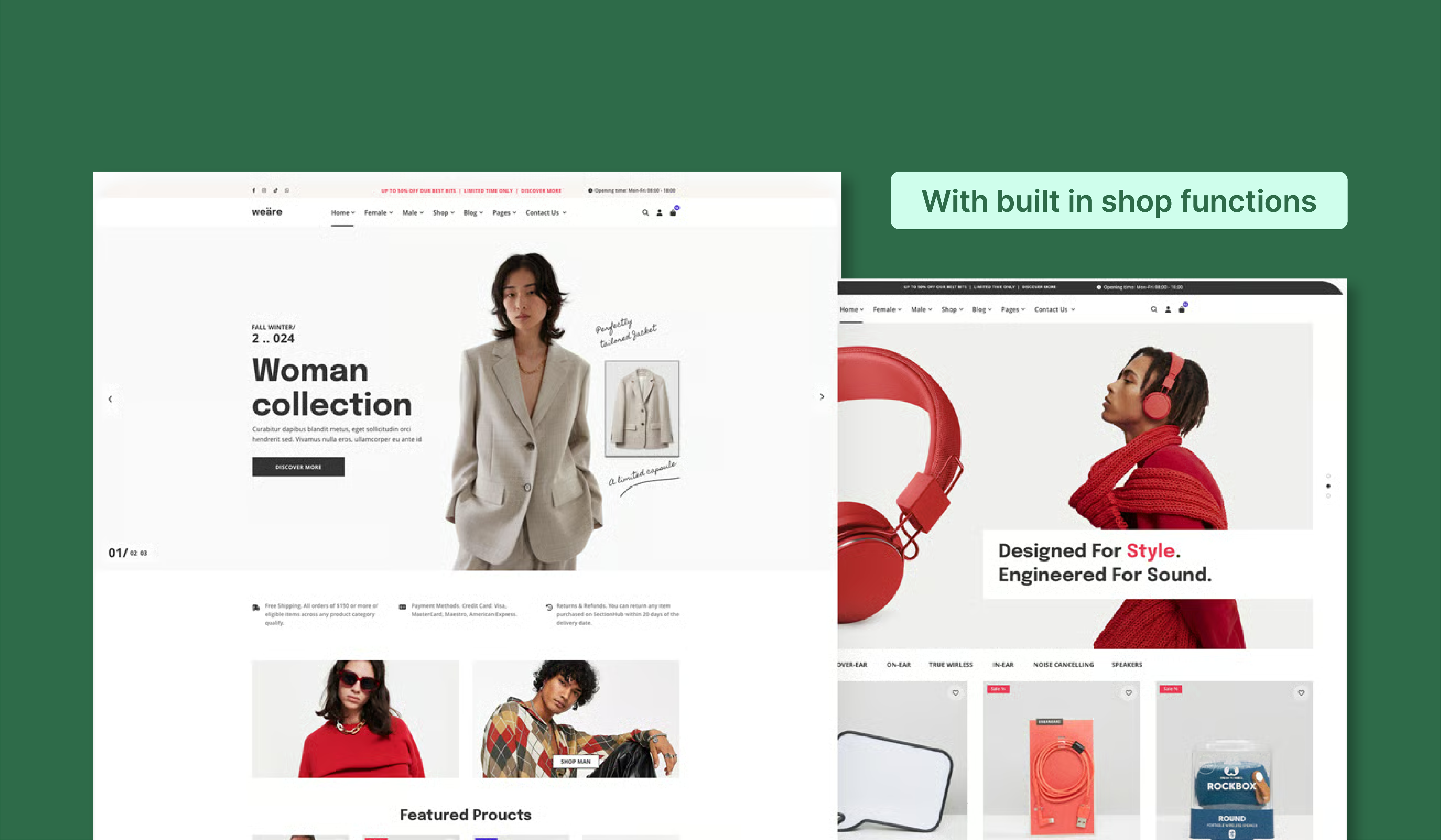 Online shop websites designed for small businesses selling products or services online.