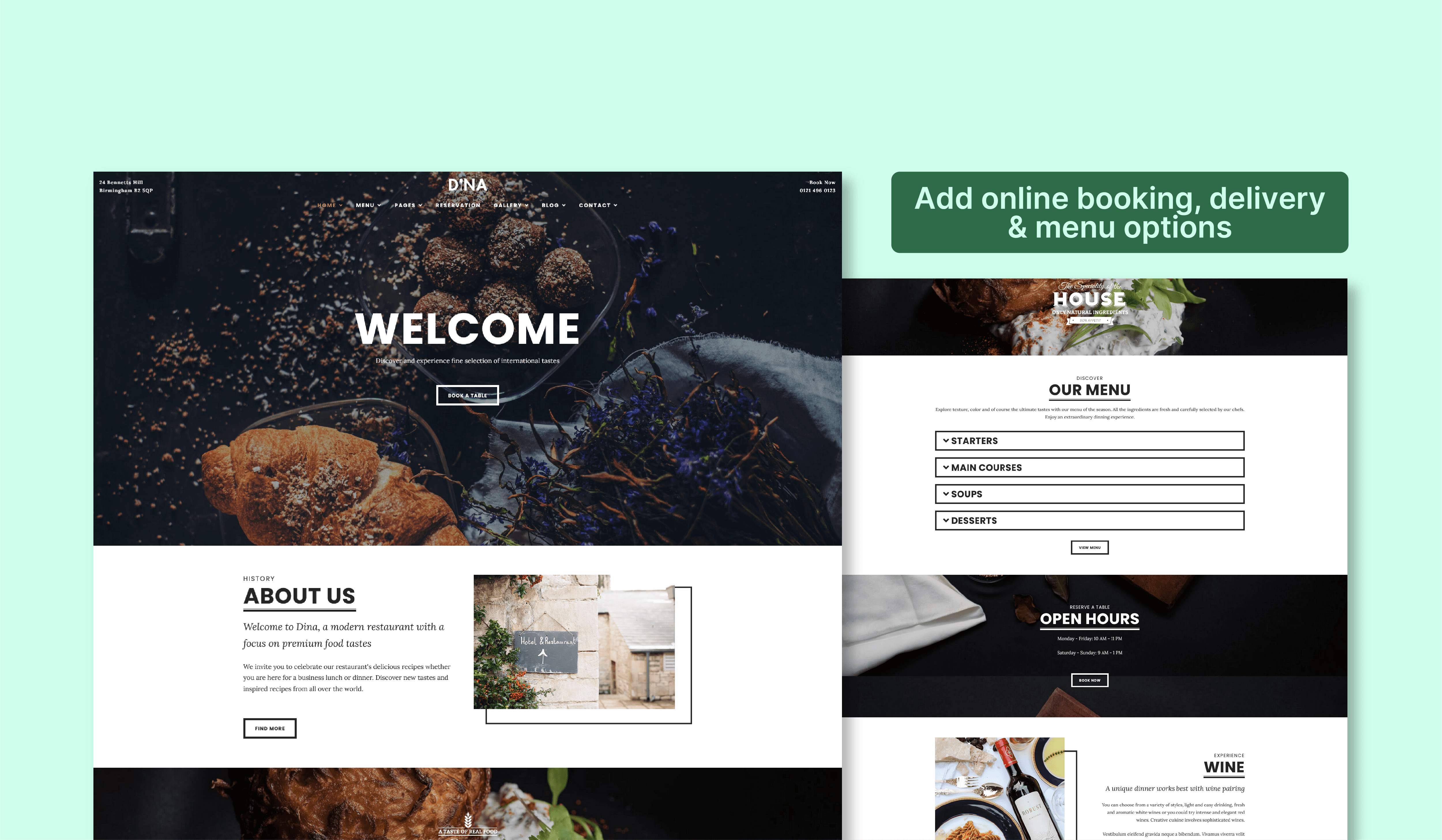 Websites for restaurants, cafés and hospitality venues, including menus, bookings and delivery links.