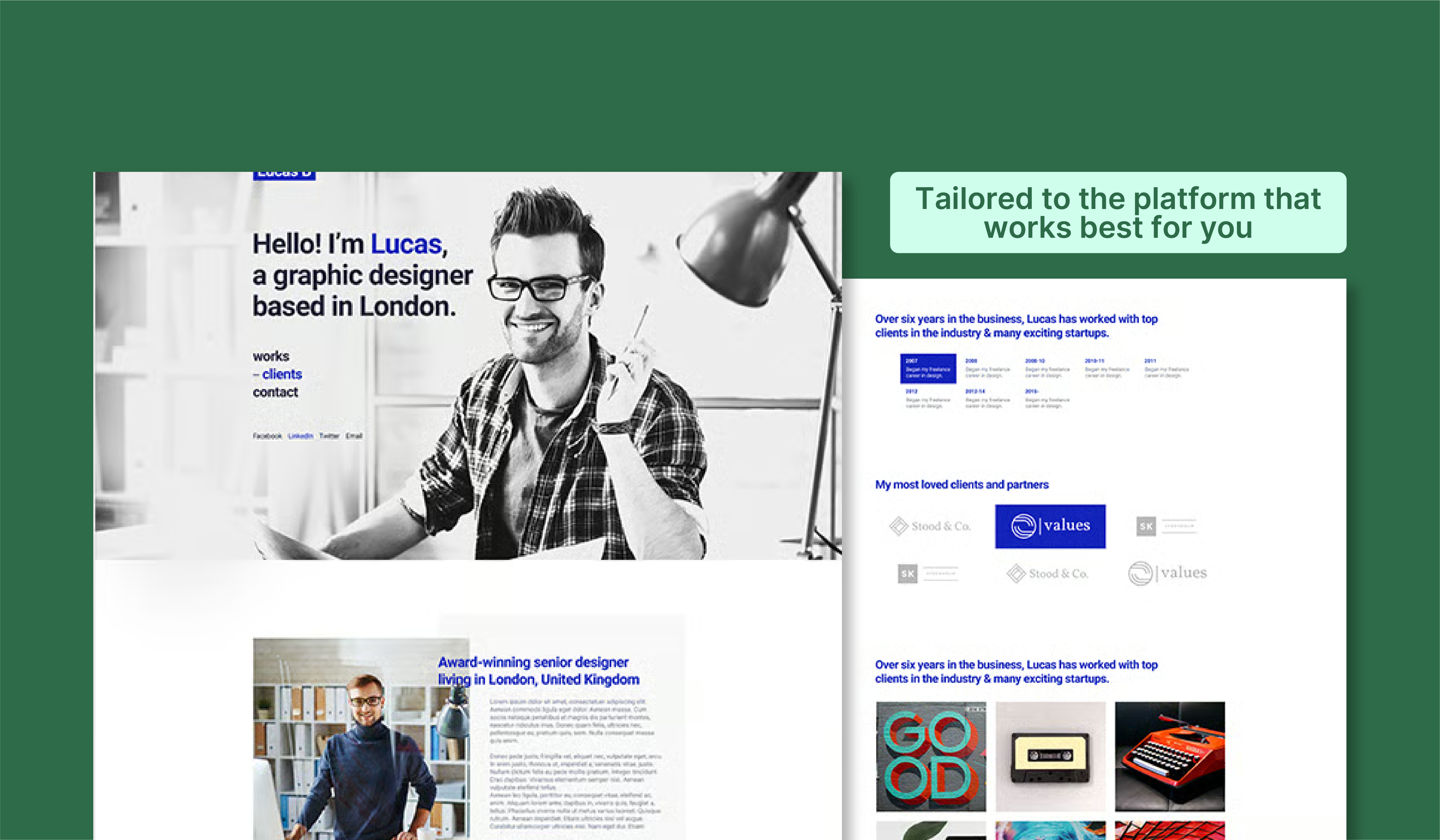 Clean, minimal websites for portfolios, personal brands or sharing links in one place.